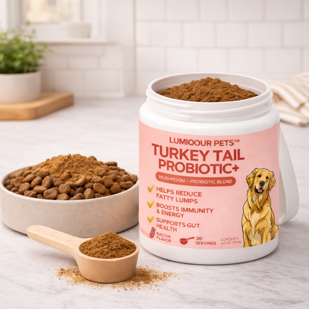 We keep it simple and effective — each scoop delivers 1000 mg of Organic Turkey Tail Mushroom Powder to help fight infection and shrink fatty lumps, paired with Lactobacillus Acidophilus, a powerful probiotic that promotes gut health and strengthens their immune system.